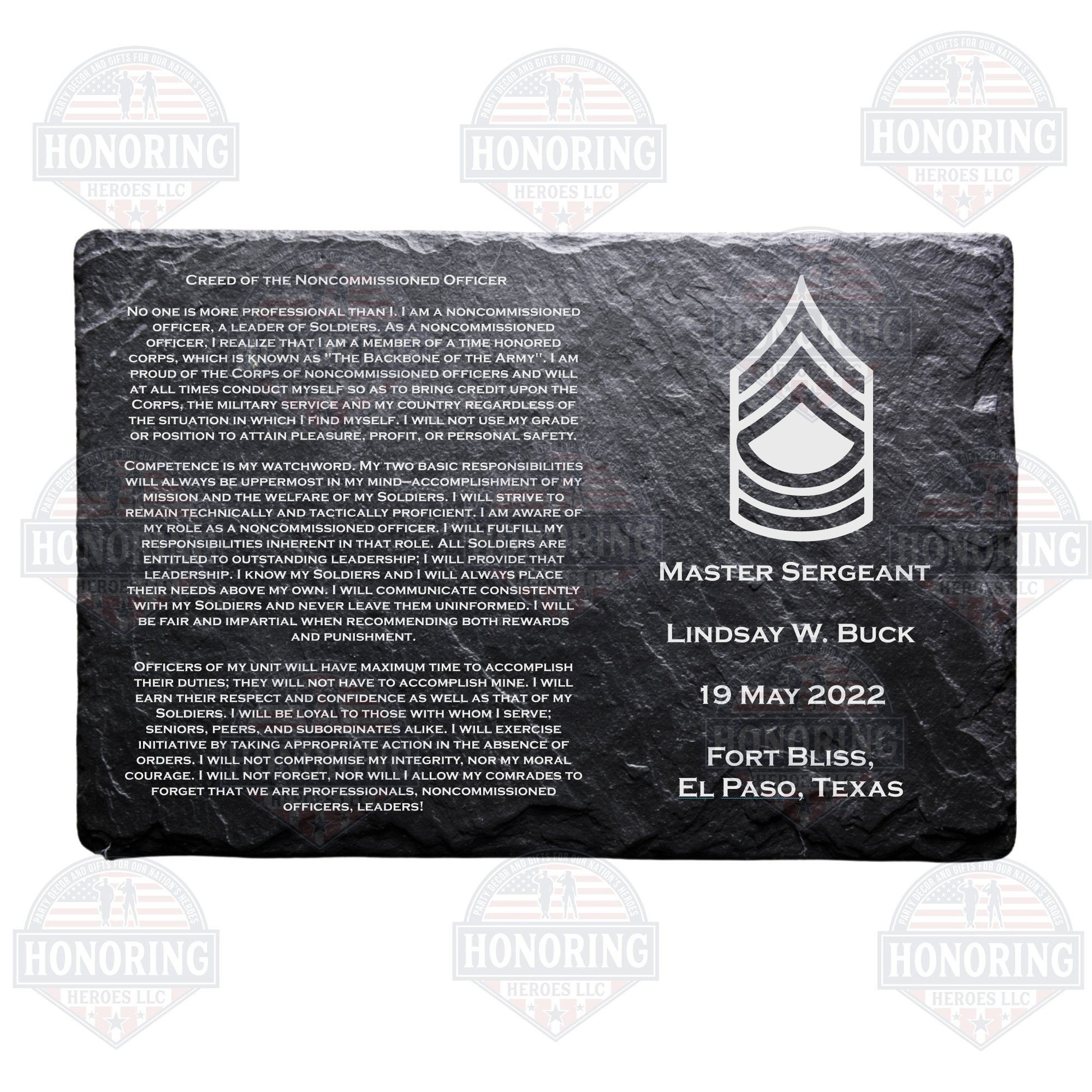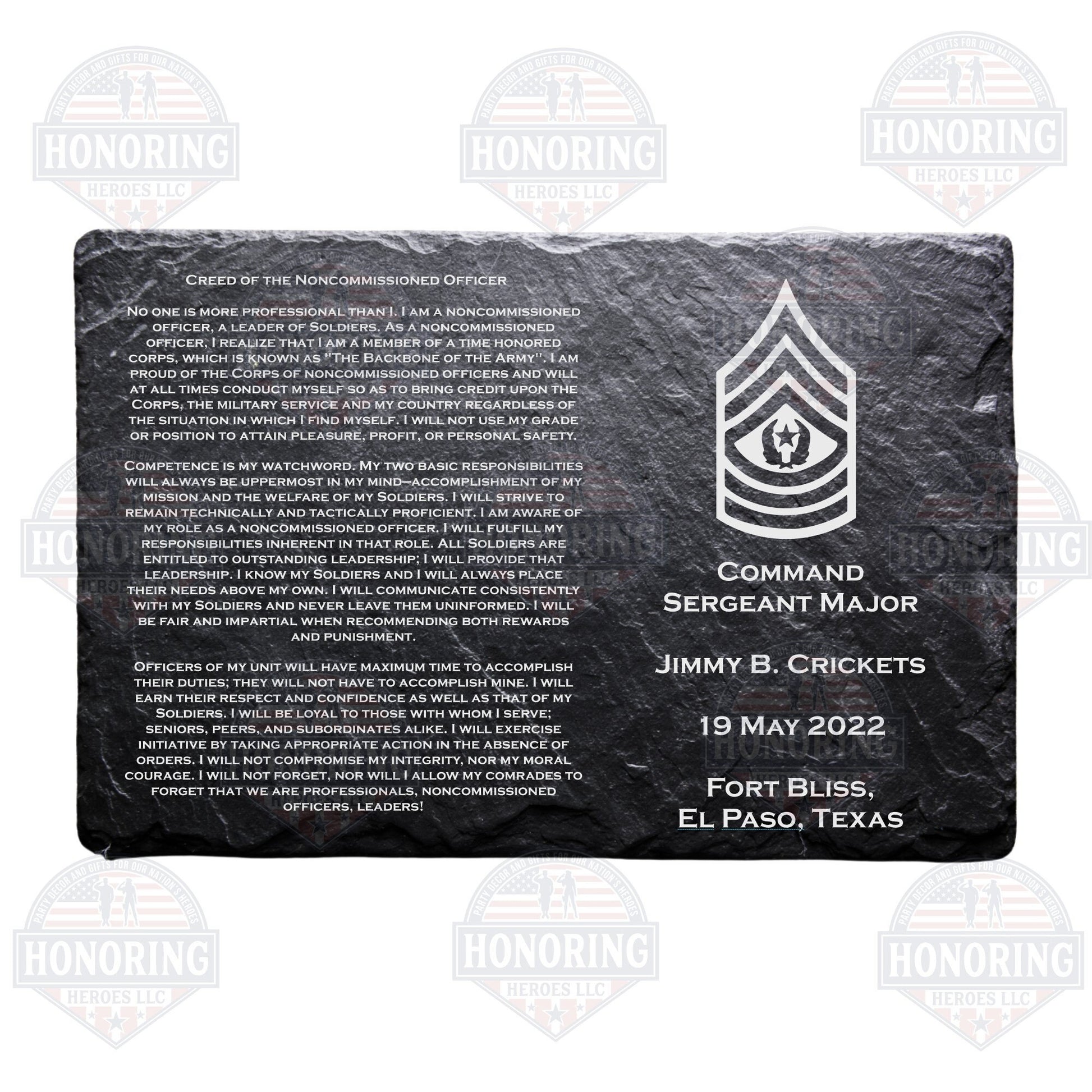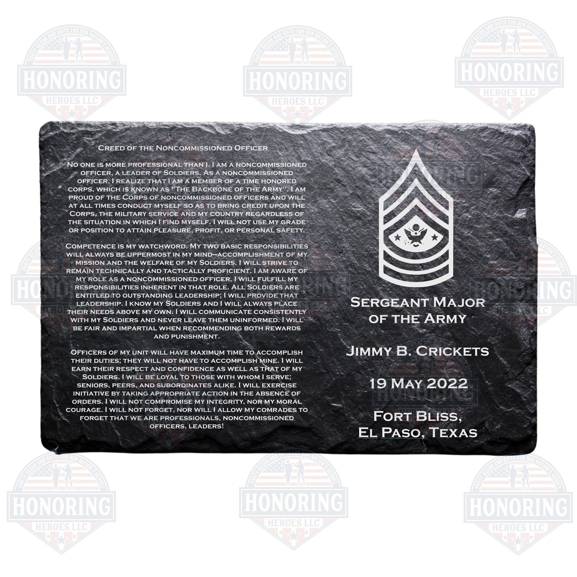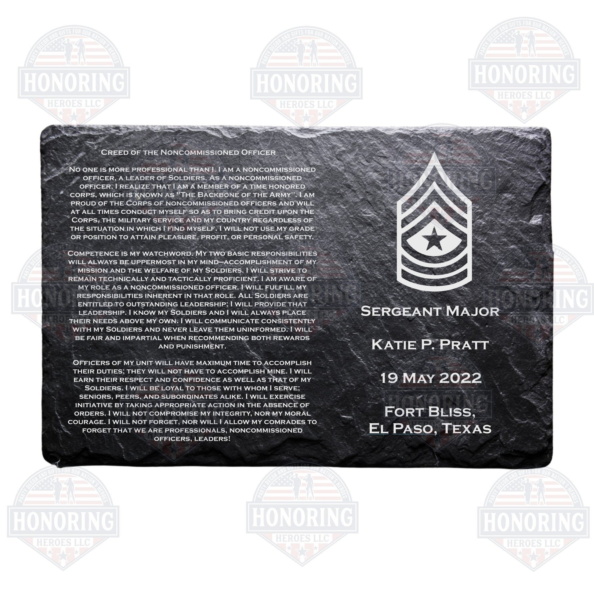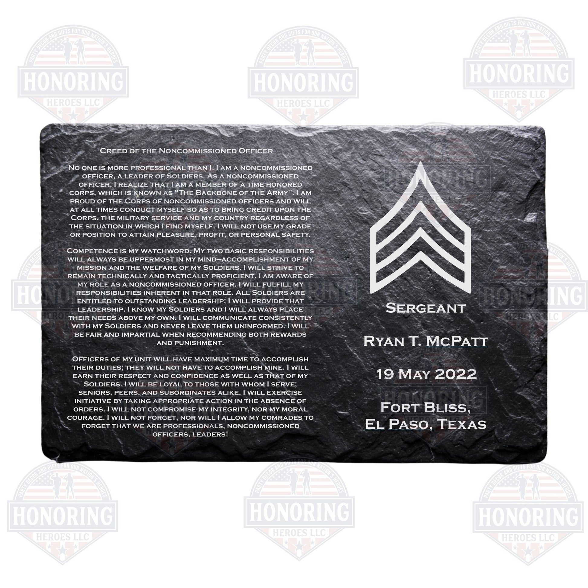 ARMY Personalized NCO Creed Engraved Slate Plate