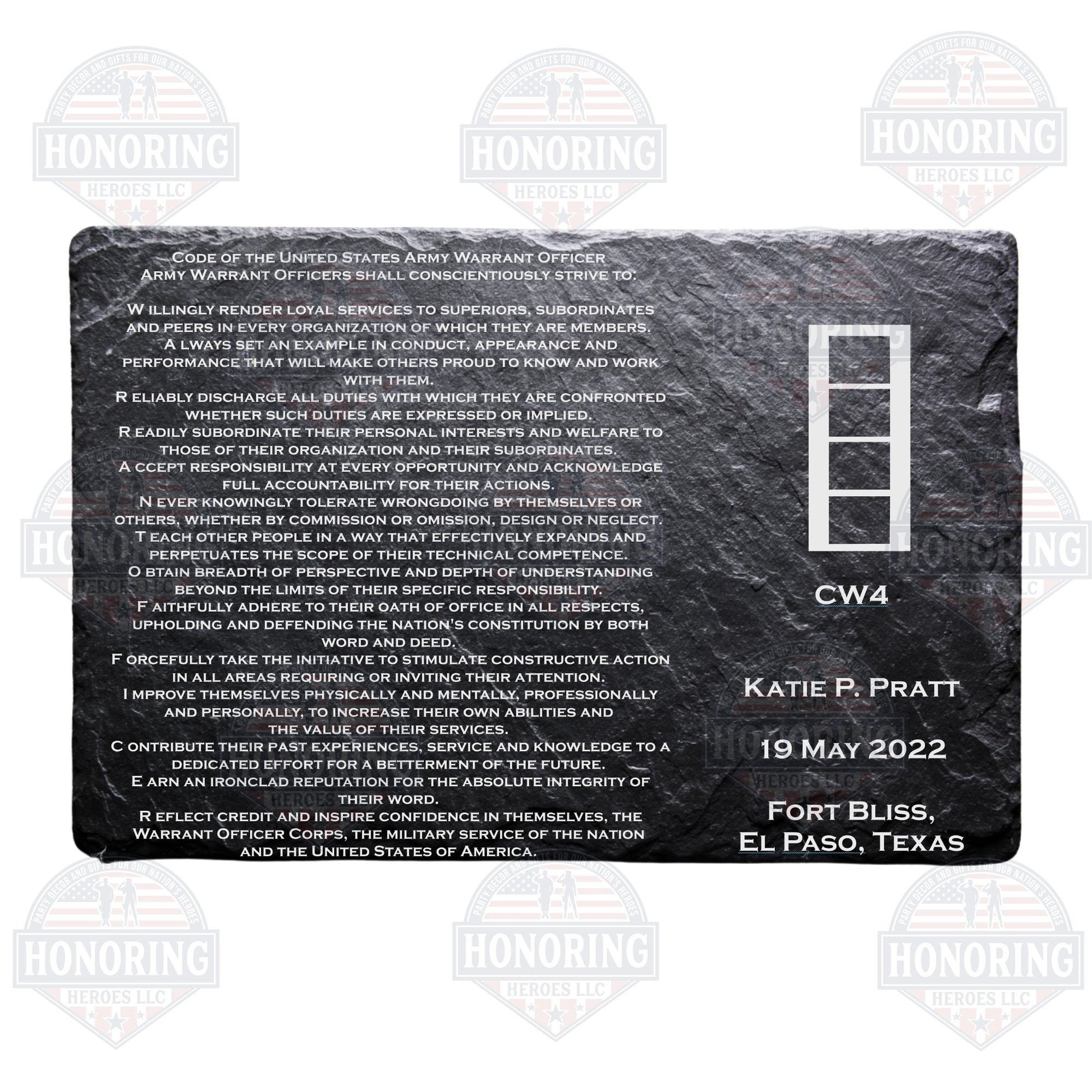 ARMY Personalized Warrant Officer Creed Engraved Slate Plate