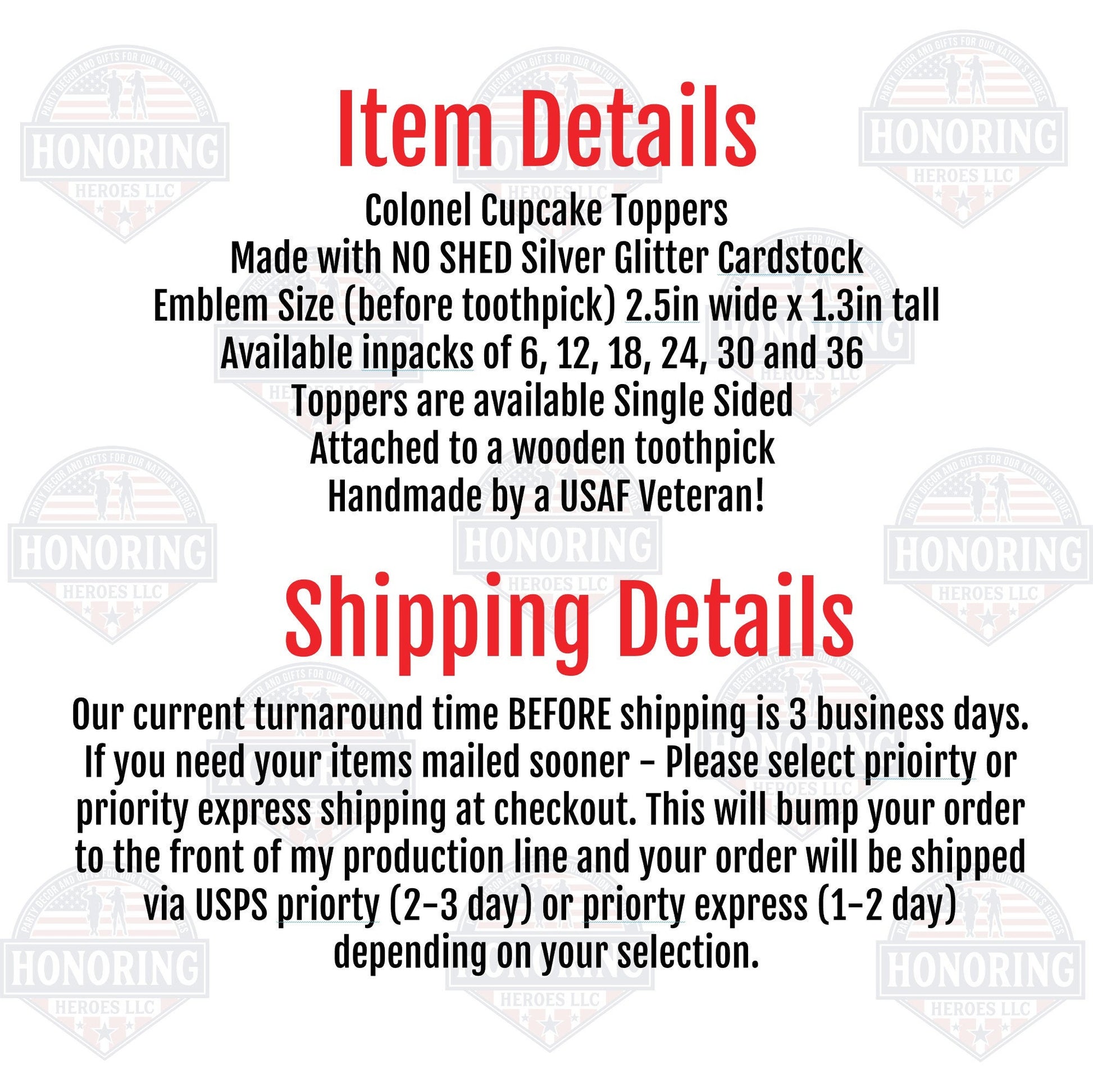 Military Colonel - Captain Cupcake Toppers. Perfect for All Military Branches - Col, Capt, Party Decorations for Promoting or Retiring