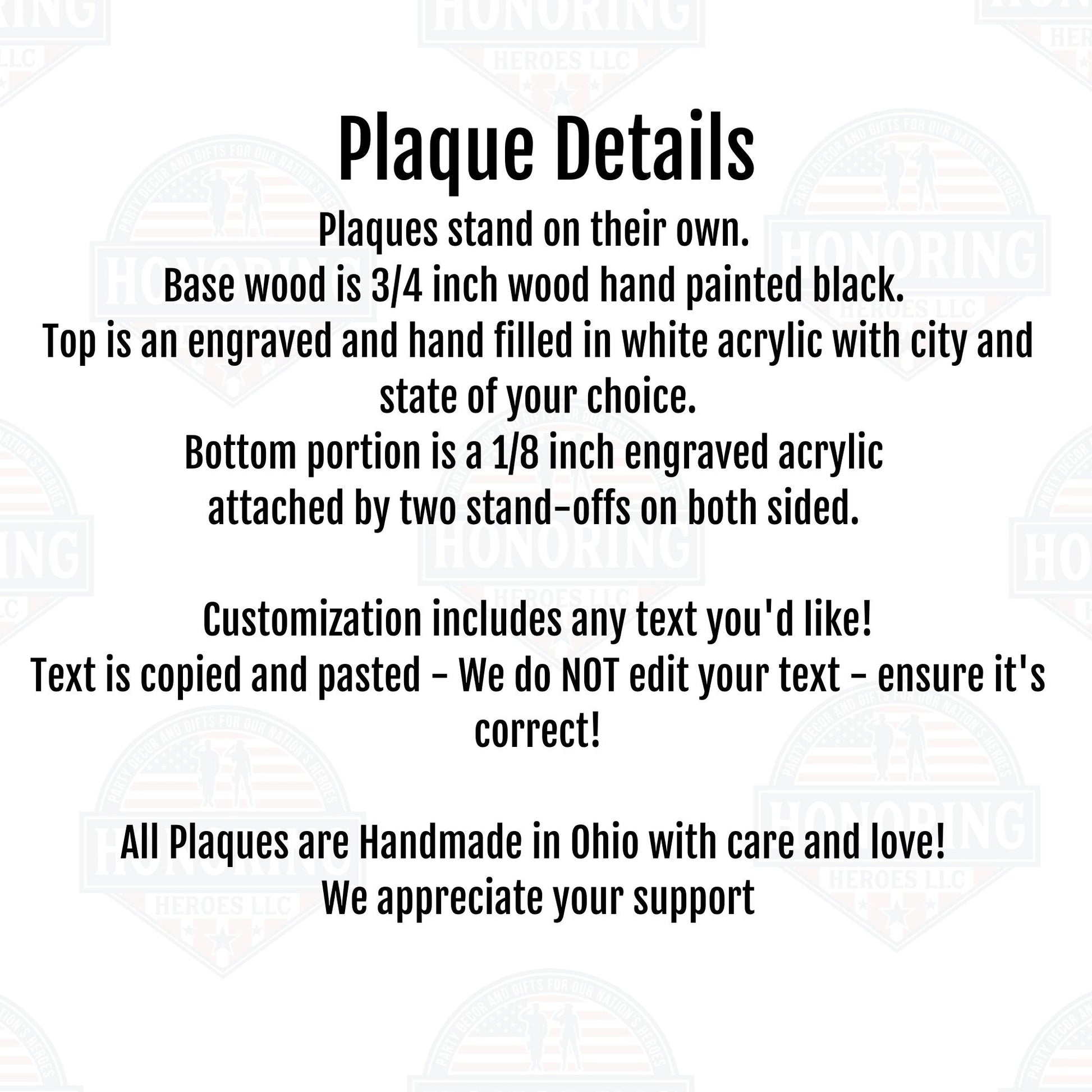 The back of your plaque will be a light wood color. The perfect area for messages of well wishes and signatures! - Change of Emblem