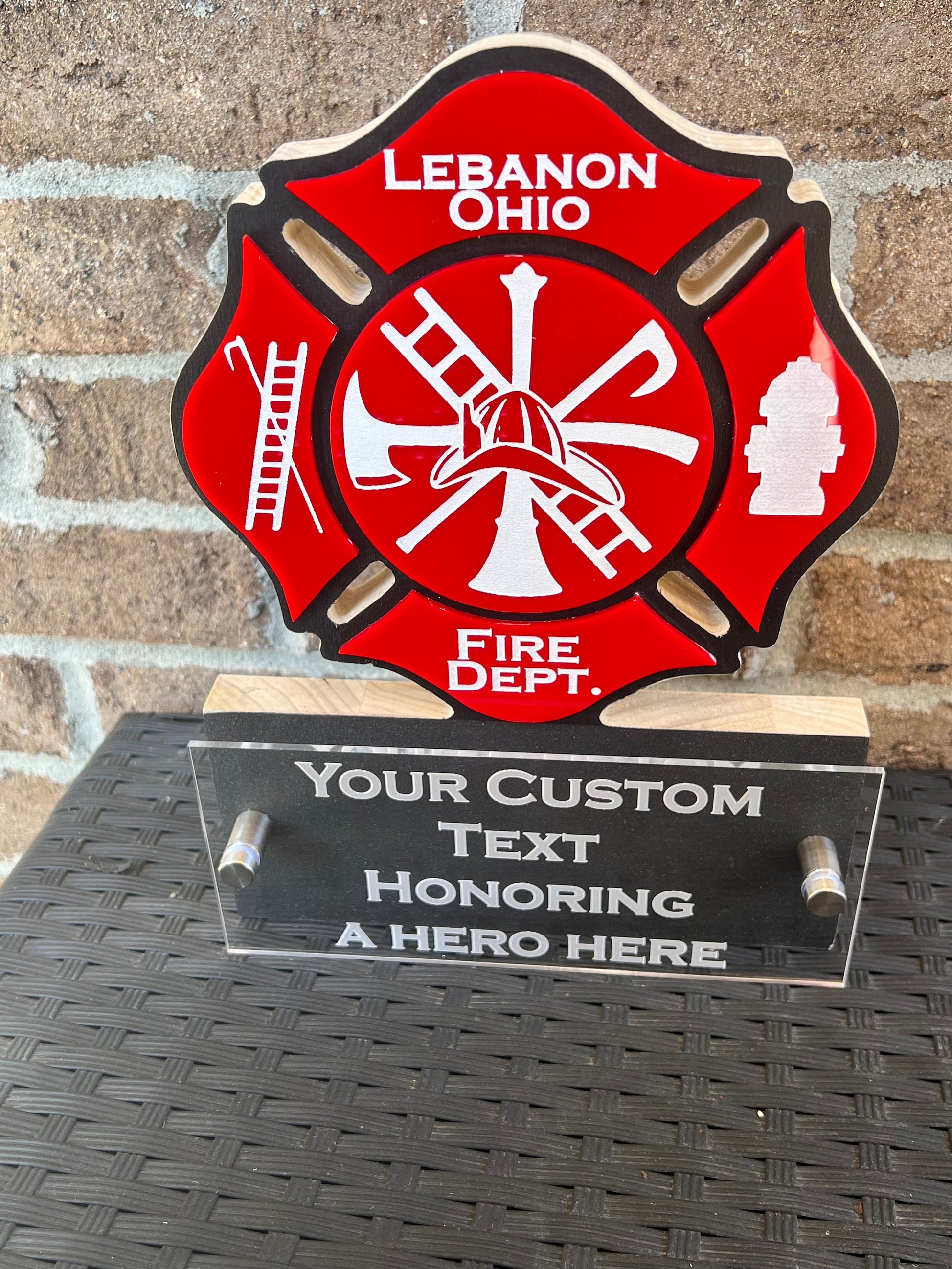 Personalized Maltese Cross Fire Fighter Desk Plaque